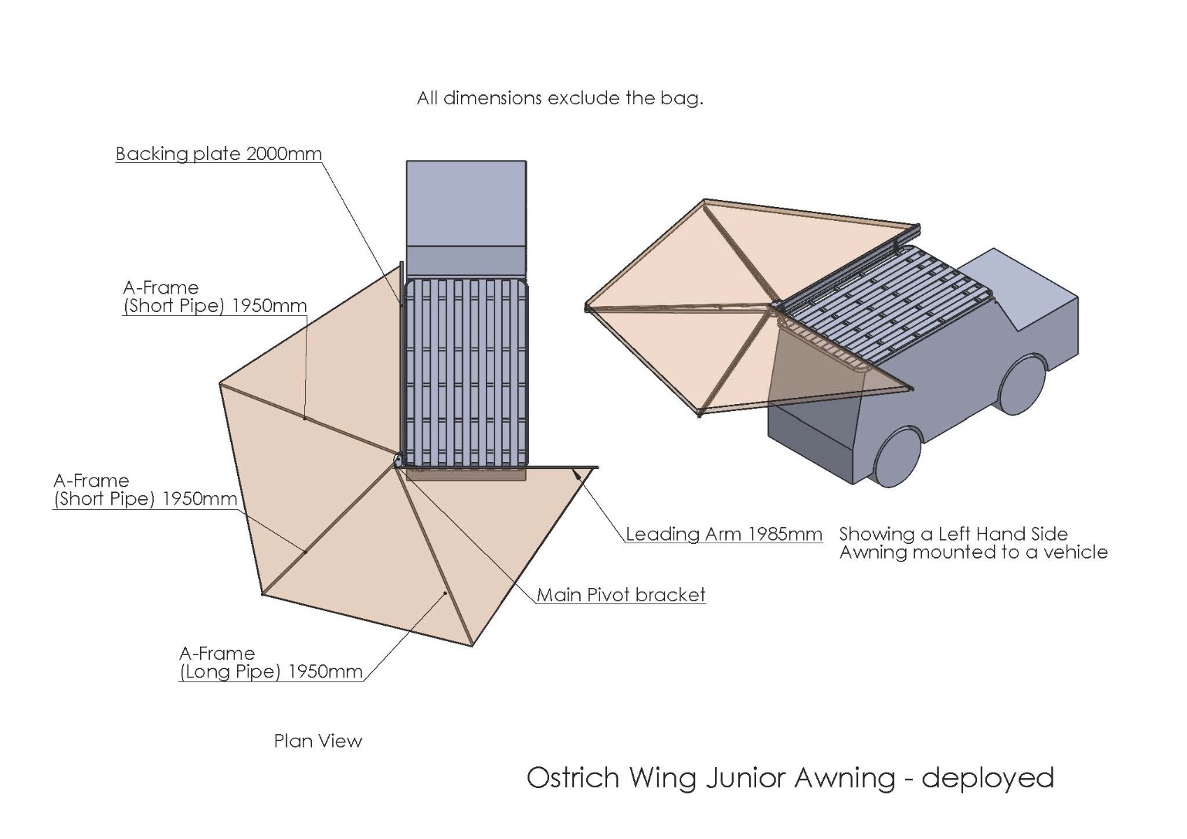 The Ostrich Wing Junior is a slightly smaller version of the popular Ostrich Wing. The “Junior” backing plate length is 2m vs. the Ostrich Wing backing Plate length 2.55m. Making the “Junior” ideal for smaller SUV’s and Double/Extra Cabs.
