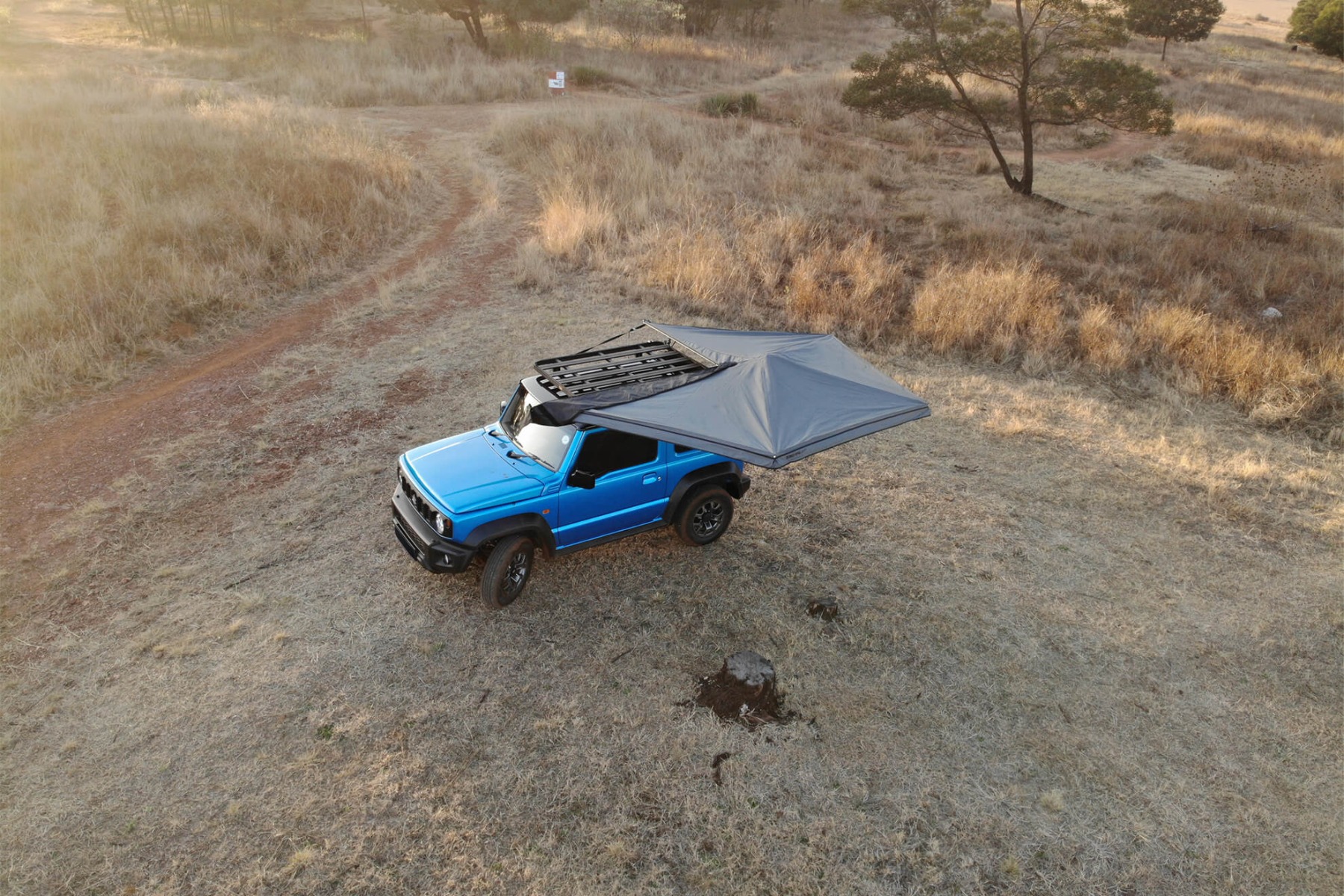 The Big Country Ostrich Wing Junior is a robust awning made of 320gsm rip-stop canvas, supported by aluminum frames. This awning will provide you with as much as 7m² of shade in less than 30 seconds and can be set up and folded by one person.