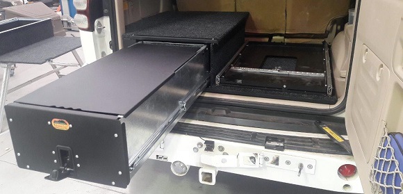The drawers run on sealed roller bearings and are capable of carrying over 150kg per drawer. The drawers are carpeted inside and on top, have a carpeted face and are lockable.