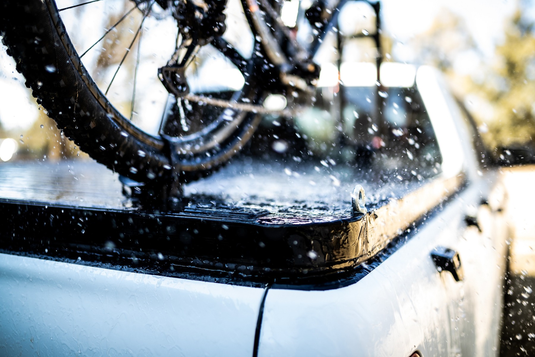 The opening and closing of this hardcover is made easy by heavy duty gas lifters. So even with a bike on top of the load bay cover, opening it is a breeze. The push locks make sure it doesn’t open when it doesn’t need to, and provide an easy way to open if it does need to. For easy acces of the load bay Big Country made sure the tailgate is still operable with the Tourtop closed. No need to worry about the weather because this load bay cover is water resistant and super solid.