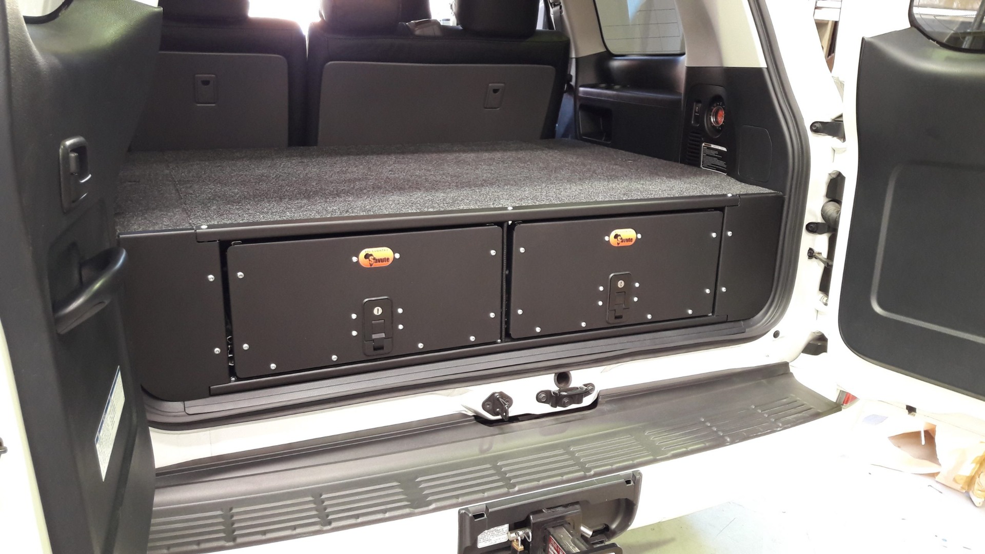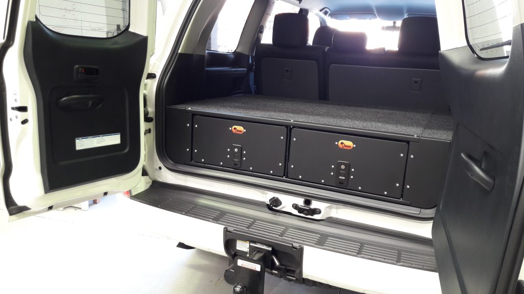 The drawers run on sealed roller bearings and are capable of carrying over 150kg per drawer. The drawers are carpeted inside and on top, have a carpeted face and are lockable.