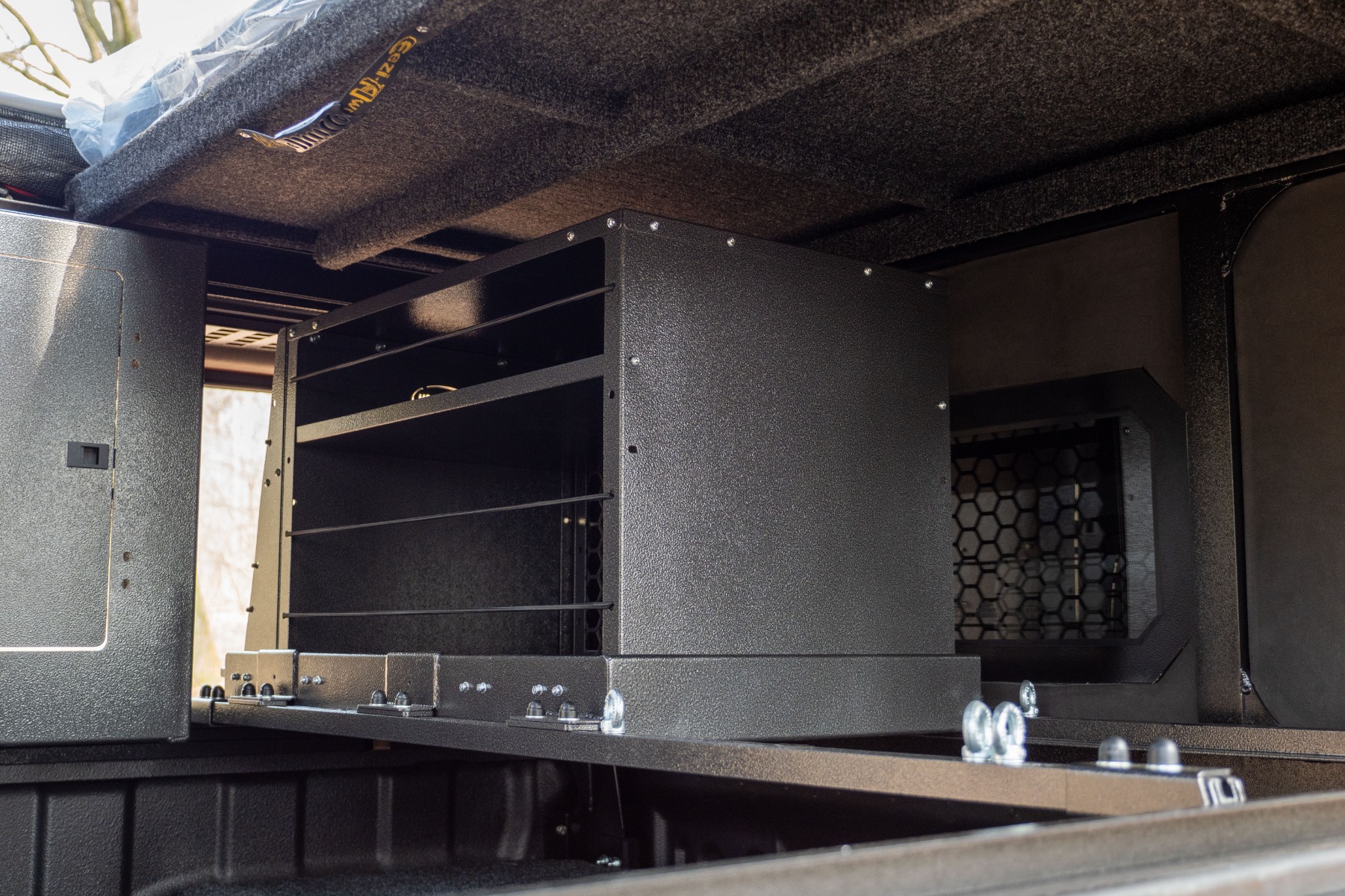 The Bushtech Bush Cabin Ammobox Holder is specifically designed for integration into the Bushtech Bush Cabin and provides a reliable solution for securely storing up to 3 ammoboxes. You can easily make your gear accessible and organized with a side-to-side sliding motion of the ammoboxes. The holder is mounted at the front of the Bush Cabin and comes standard with six eye nuts and corresponding bolts, ensuring the ammoboxes are securely fastened during travel. The unit is designed to easily slide in and out of the Bush Cabin’s frame, allowing quick installation or removal when needed. In addition to storing ammoboxes, this sturdy platform also serves as an excellent foundation for mounting a pantry inside the Bush Cabin, making your Bush Cabin even more comfortable and versatile.