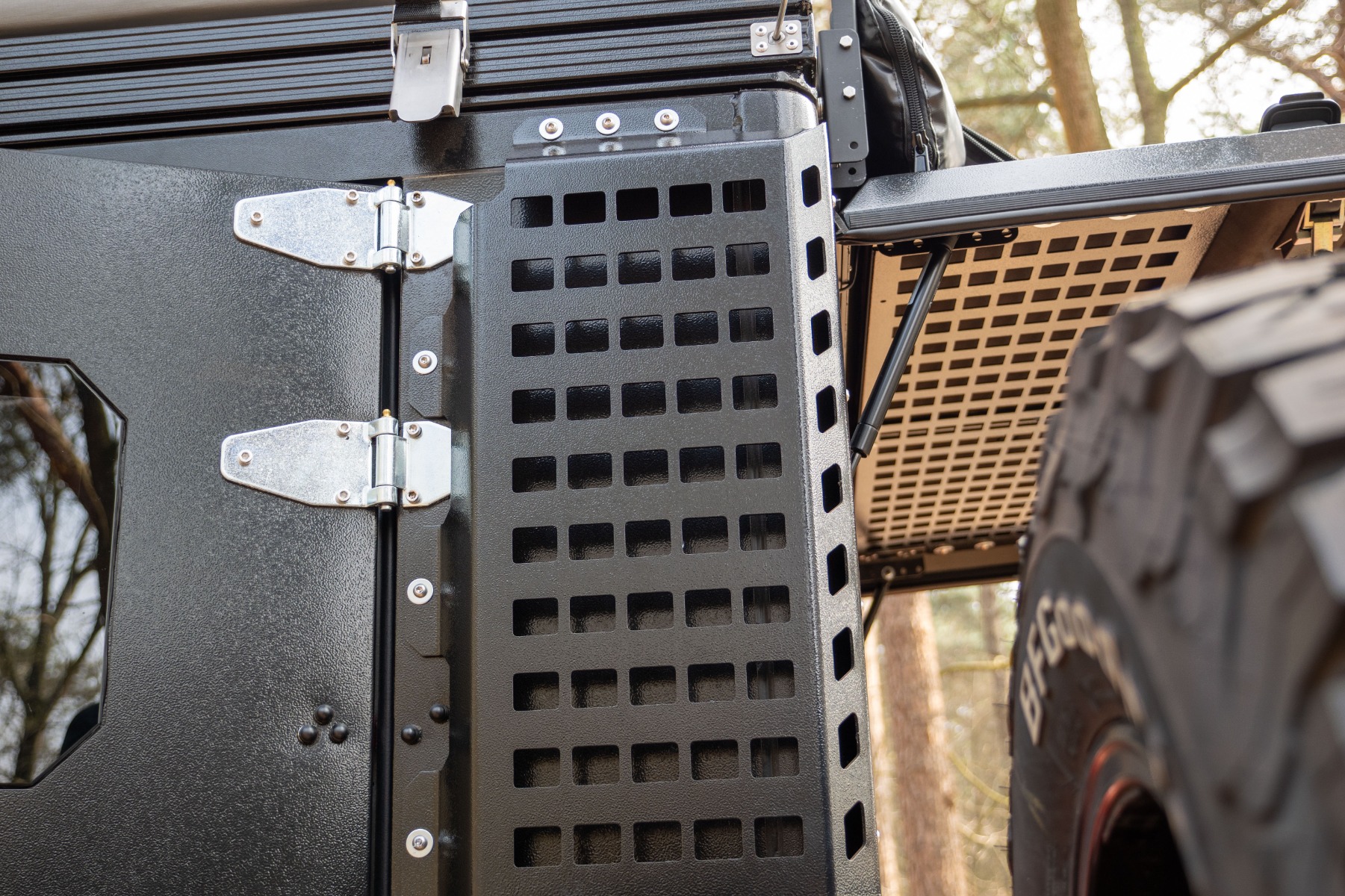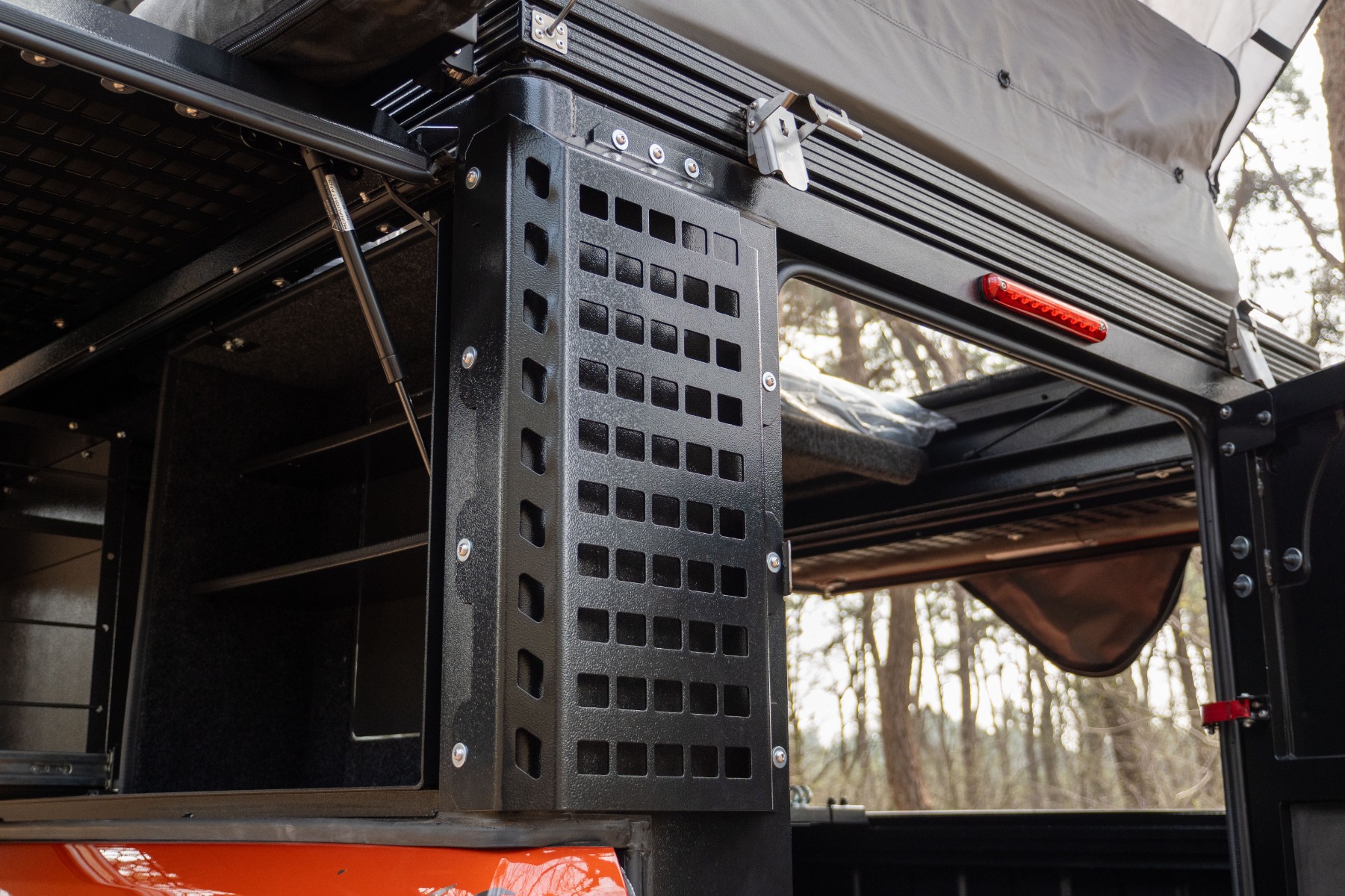 The Bushtech Bush Cabin Molly Panels Rear Corners combine rugged functionality with smart design. Built to handle the demands of off-road adventures, they offer exceptional versatility for mounting a wide range of gear, whether it’s recovery equipment, storage pouches, tools, or outdoor essentials. Beyond their mounting functionality, the panels also provide durable corner protection, shielding the rear edges of your Bush Cabin from impacts while navigating rough terrain.