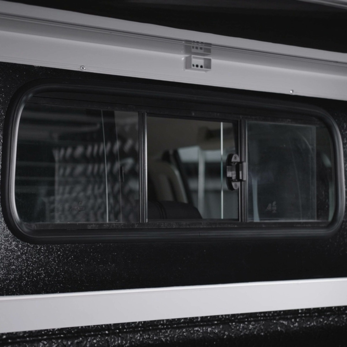 The Bushtech sliding window is ideal for creating more ventilation and daylight in the canopy, for example, when transporting pets in the back of your pick-up. The sliding window is made of 4mm toughened glass, available for two applications: mounting in the front panel or in the side doors.