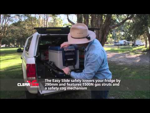 The ClearView Easy Slide ES100plus is a fridge lowering fridge slide. Featuring a patented Aussie design that safely lowers your portable travel fridge an impressive 290mm with the aid of powerful gas struts and safety gear mechanism, the ClearView Easy Slide makes life easy.