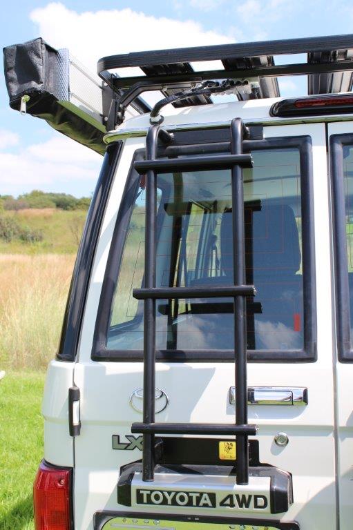 The Eezi-Awn K9 Ladder + Step Toyota Land Cruiser 76 is an essential accessory if you have mounted a roof rack on your Toyota Land Cruiser 76. The lightweight aluminum construction and durable powder coating ensure that you can always access your gear on the roof rack easily and give your vehicle an adventurous look.