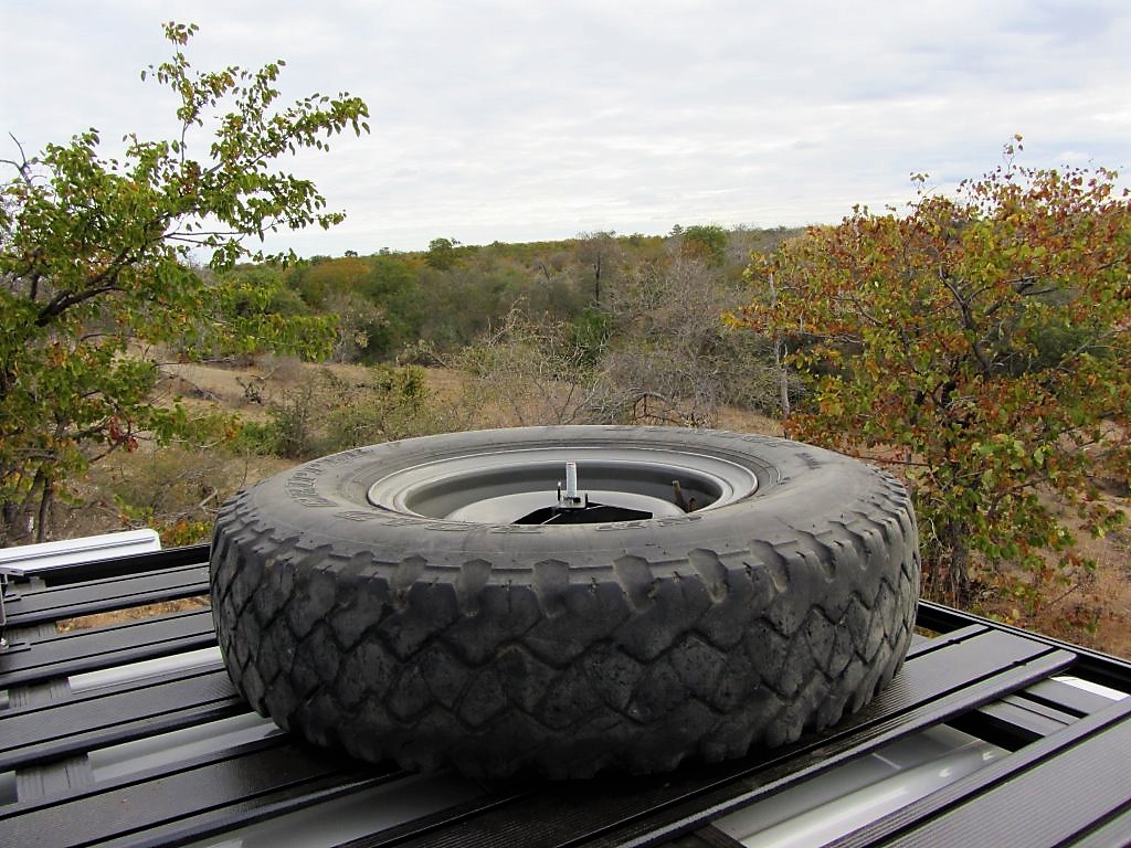 The Eezi-Awn K9 Spare Wheel Holder is designed to transport a Spare Wheel easily, safely, and securely on K9 Roofracks.