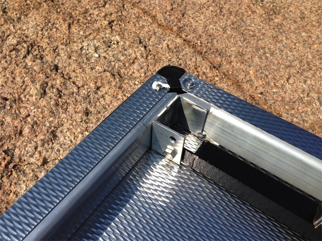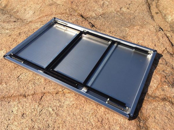 The K9 Table is a lightweight and sturdy table. Its aluminum legs are designed to keep the weight low and can easily unfold and lock into place. The tabletop is made of rigidised stainless steel to minimize the risk of scratching. The big advantage of these tables is that they have no loose finishing edges, so there are no seams where dirt can accumulate.