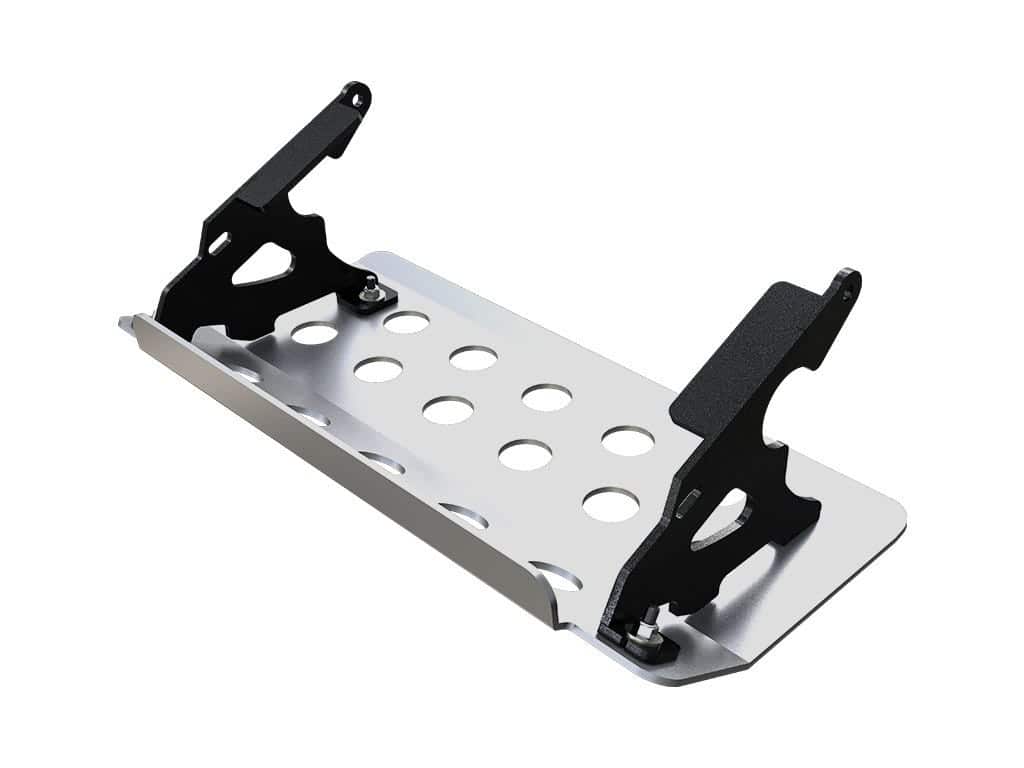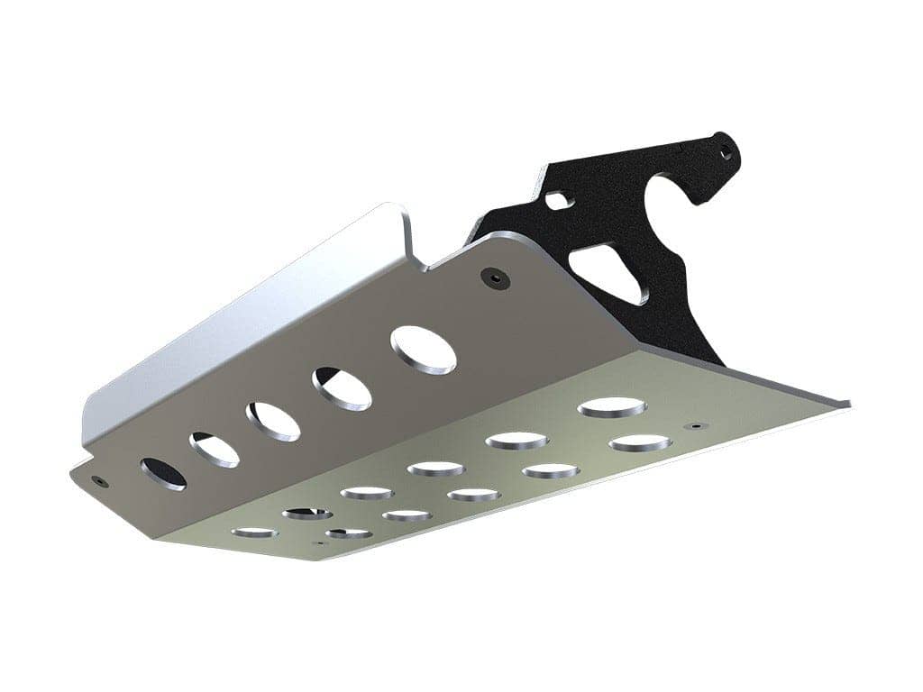 This thick aluminum plate mounts underneath the Land Rover Defender and protects the engine’s sump from damage.