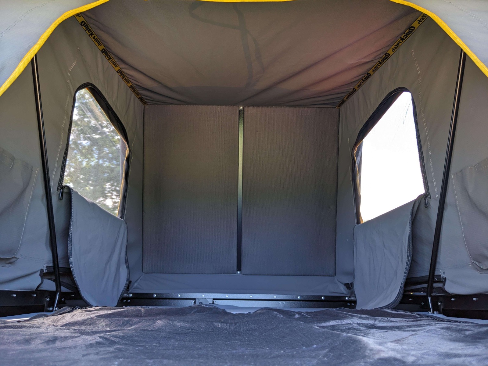 Like all Quick Pitch products, this rooftop tent is made from the finest aluminum without the use of bolts or pop rivets in the structure. This not only prevents leaks but also offers the greatest possible strength. Instead of hinges this tent was designed with extrusions that swivel snuggly into each other, spreading the weight of the top of the tent evenly across the width of the tent. The very sturdy design means that 40kg can be loaded on top of the tent.