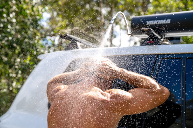 Furthermore, you can equip the Roadshower with a compressor which ensures that you can adjust the water pressure to rinse your belongings such as the dishes or your mountain bike, making the Roadshower multi-purpose. You can add water by means of the handy turning cap that is connected to a water tank with a capacity of 26 liters. It is also possible to use a hot shower on cloudy days using a hot water boiler (not included).