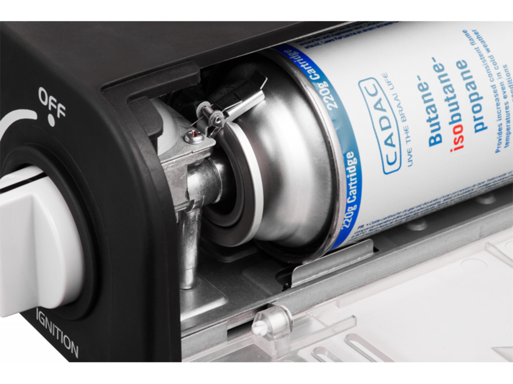 Ontbijt, lunch of diner – de maaltijdopties zijn eindeloos met deze compacte, veelzijdige gasbarbecue.\nHet is lichtgewicht en biedt tot vijf verschillende kookoppervlakken – inbegrepen is een brander met een pannenstandaard, een geribbelde BBQ-grill, een platte grillplaat en een deksel/koepel die ook dienst doet als pan. Dit lagedruk (LP) buitengasfornuis maakt gebruik van een 220g/227g propaan bajonetgaspatroon dat rechtstreeks in het apparaat wordt geschroefd. Na gebruik zijn de kookplaten eenvoudig schoon te maken en kan het apparaat in een handige draagtas worden verpakt.
