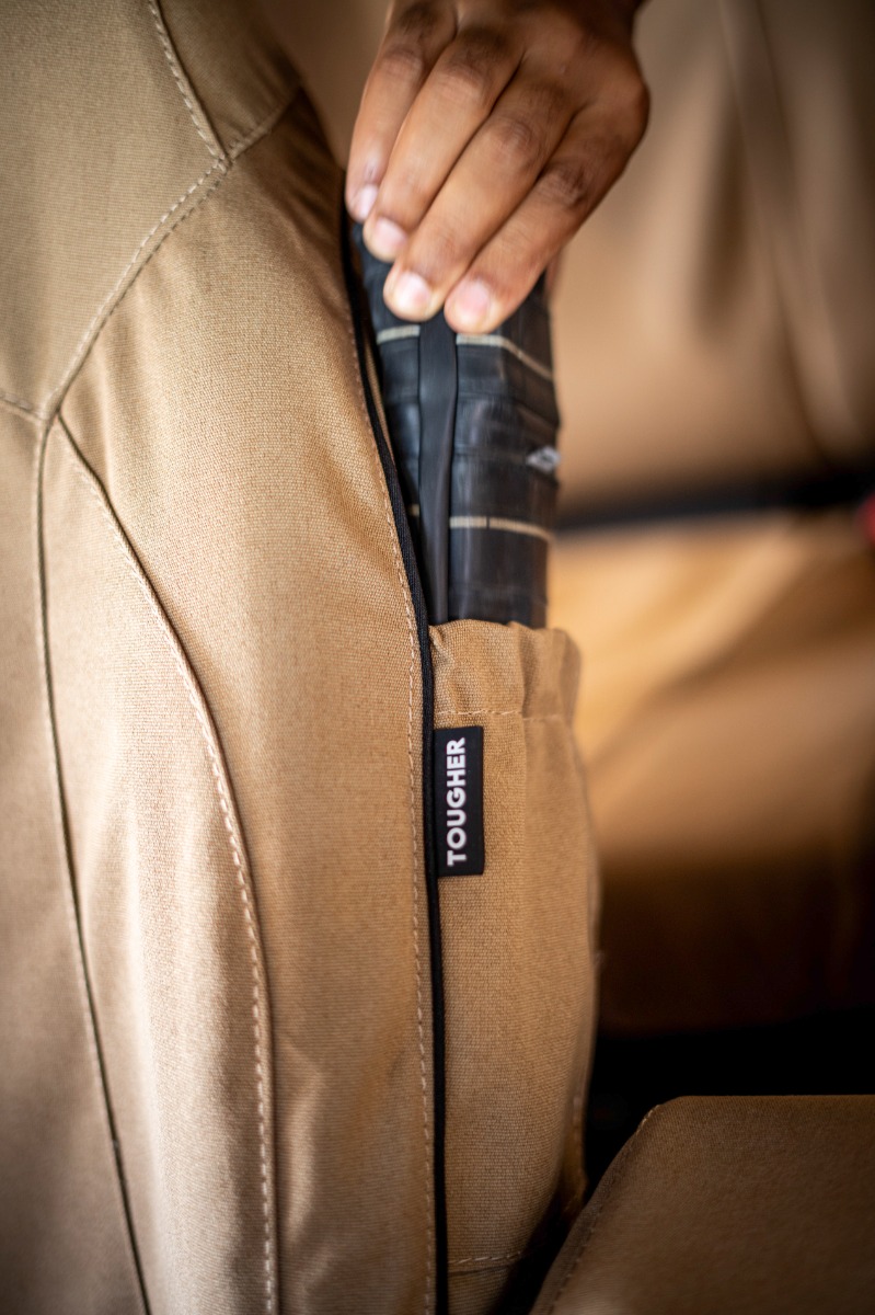 Thougher Seat Covers are luxury-looking protective covers with a sleek, tailored fit for the original front seats and rear bench in your car. The Kit is crafted from highly durable, breathable, and comfortable Polycotton fabric designed to remain in excellent condition even with daily use and in heavy conditions. The Seat Covers are Airbag compatible and available in 2 colors; Light Khaki and Charcoal.