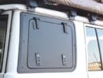 The Front Runner Aluminium Gullwing window replaces the stock RIGHT HAND rear window with an upward/outward opening window that is hinged at the top. Create easy access to the rear storage area of your Toyota Land Cruiser 76.