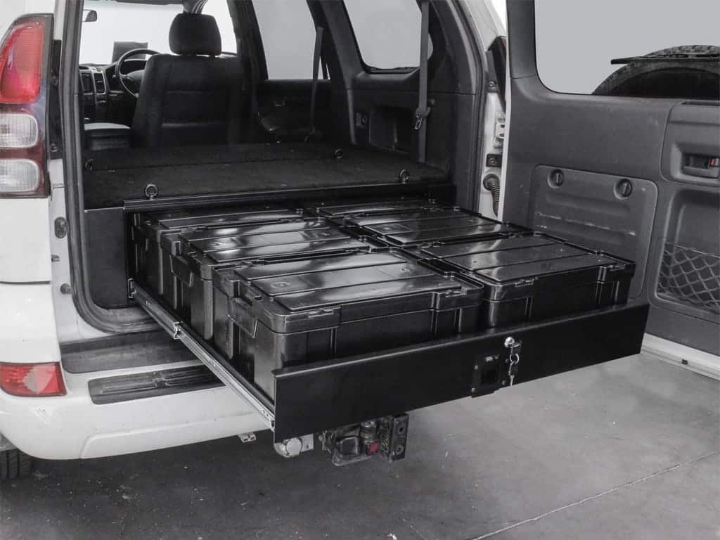 Storing, organizing, and moving gear in the Toyota Prado/Lexus GX 470 just got easier. This Cub Pack based lockable drawer system provides a comprehensive and practical storage solution for easily transporting stored items between a vehicle and the campsite, garage, store, etc. Designed specifically to fit the contours of the Toyota Prado/Lexus GX470. Engineered tough for both on and off-road conditions.