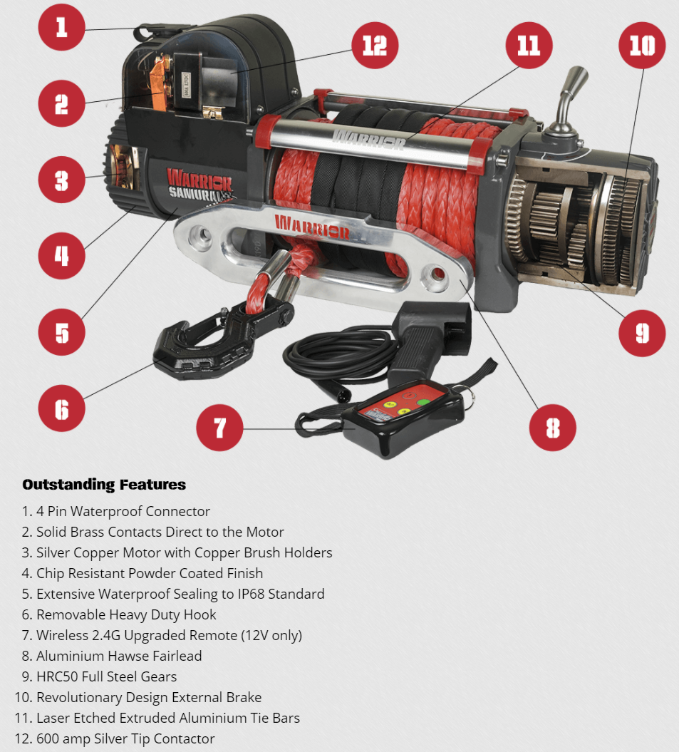 Warrior Winch has developed the Samurai series for recovery and 4×4 applications, the Samurai S8000 is excellent for this due to the properties of this winch.